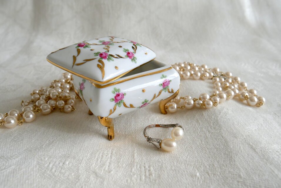 ドイツ バラの絵柄 陶磁器製トリンケット(宝飾品ケース)