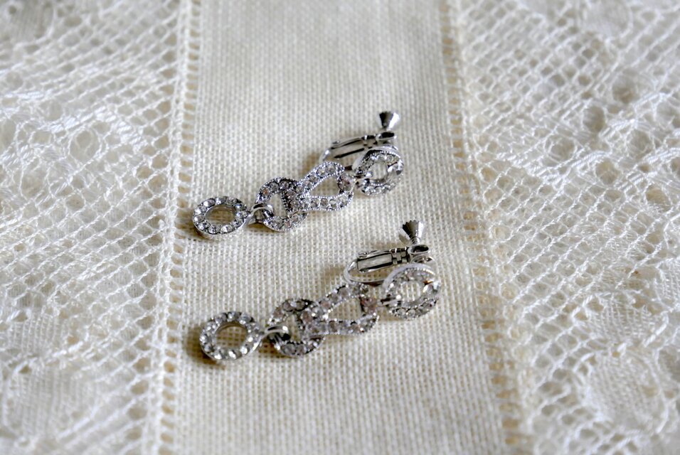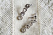 ラインストーン飾りのサークルパーツを繋げた ドロップイヤリング