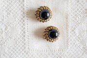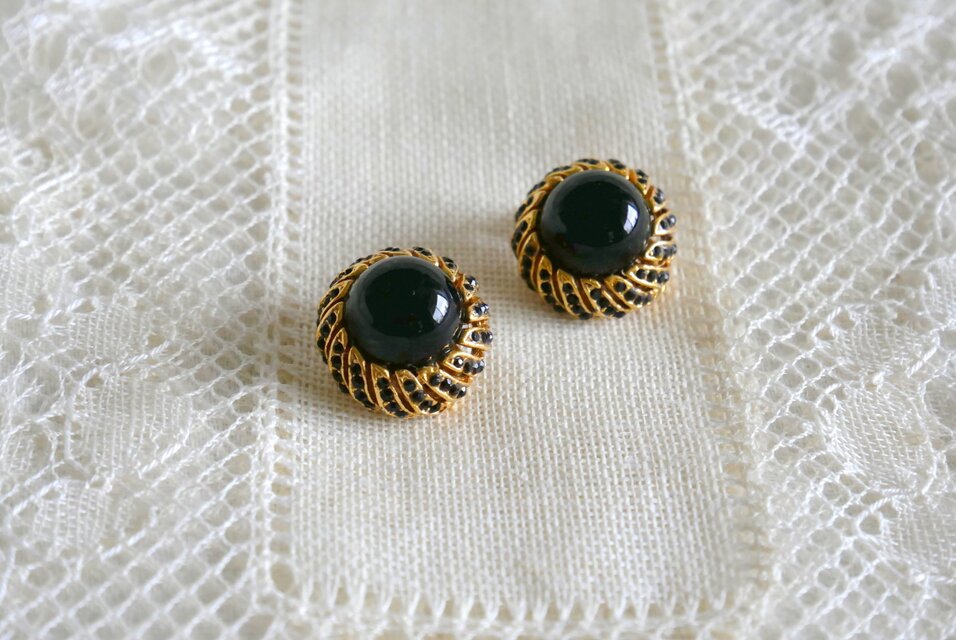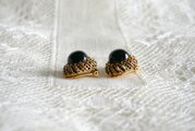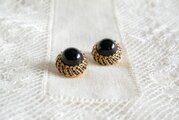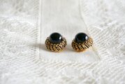 黒&ゴールドカラー 半球状のイヤリング