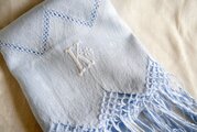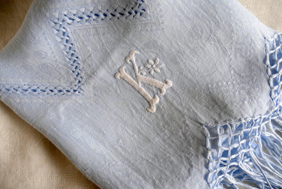 イタリア製ヴィンテージ フリンジタオル モノグラム刺繍【K】