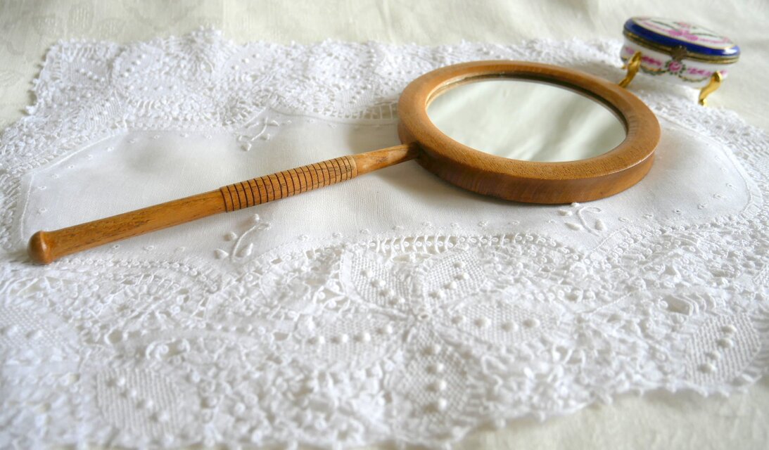 ドイツ製アンティーク 木製のハンドミラー 手鏡