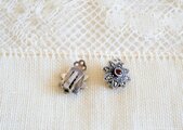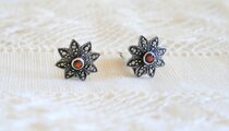 ルビー色の石を中心に、細かなマーカサイトを飾り、