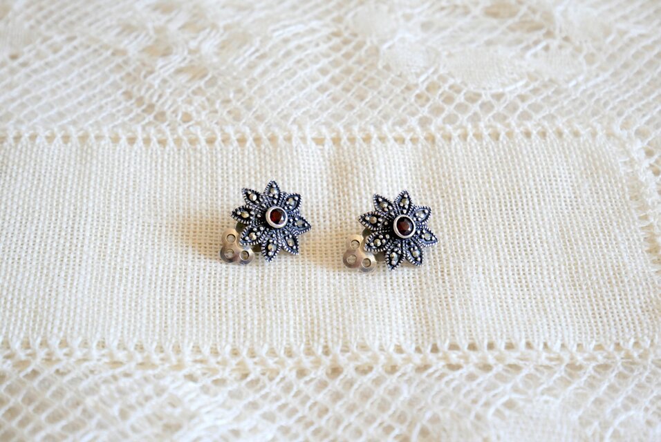 【imac】シルバー925製 マーカサイト飾りのフローラル型 イヤリング