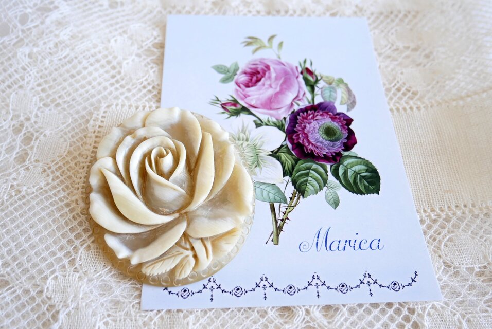 自然素材 バラを象った大ぶりなブローチ
