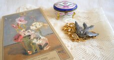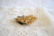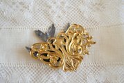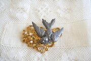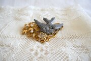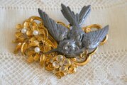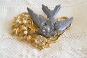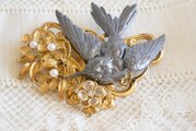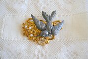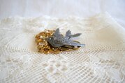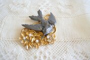 鳥も花も立体的な作りの、かなり大振りなブローチです。