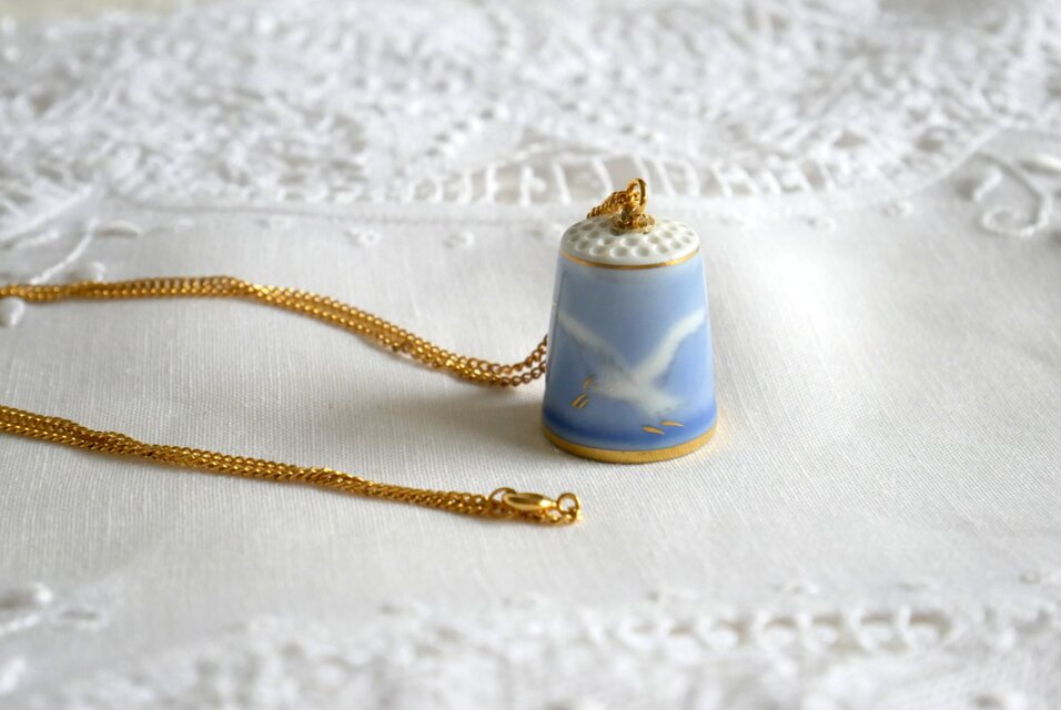 陶磁器製の指ぬきをペンダントトップにしたペンダントです。