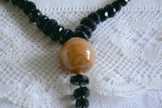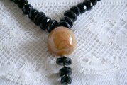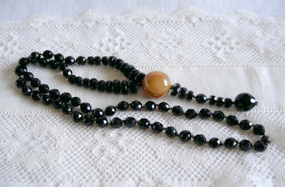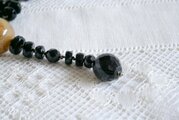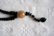 美しい輝きのある黒のガラス製の3種類のパーツを連ね、