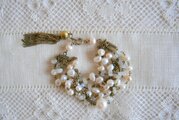 ネックレスの留め具から繋がるチェーンのタッセルには変色がございます。