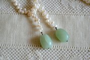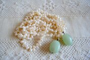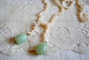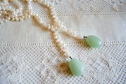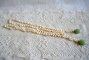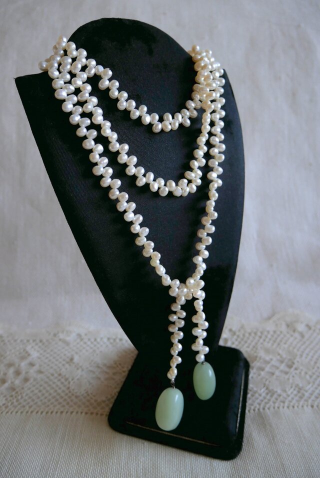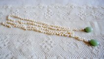 淡水パールを連ね、トップに翡翠風の天然石と思われる