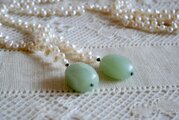 淡水パールに淡いグリーンの石飾り ラリエット