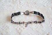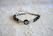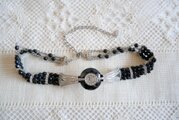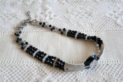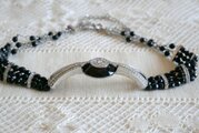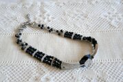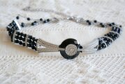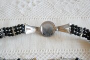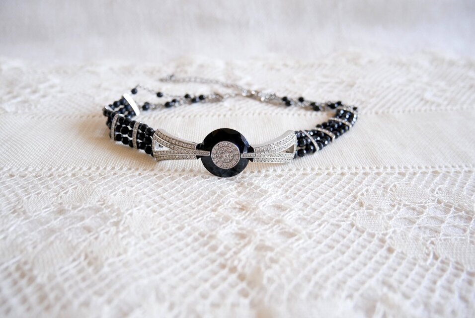 アールデコスタイル 黒とシルバー色 ラインストーン飾りチョーカーネックレス