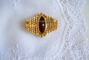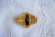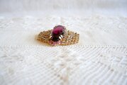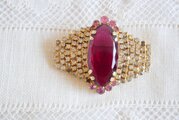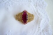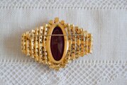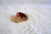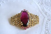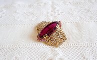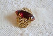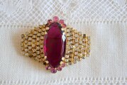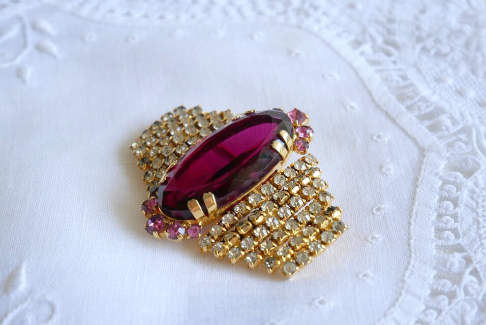 モーブ色のオーバル型 ラインストーン飾り ブローチ