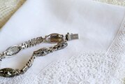 マーカサイトのパヴェをあしらったパーツを交互に7つ連ねています。