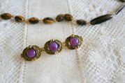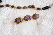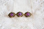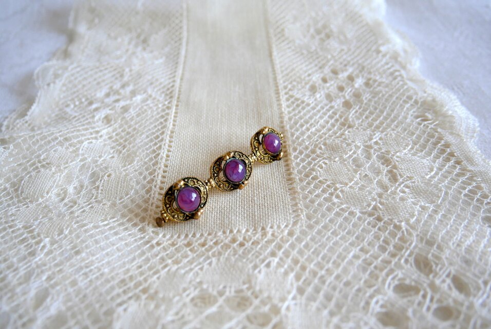 モーブ色の3連オーナメント飾り ケルト風のバー型ブローチ