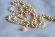粒がほぼそろった淡水パールを連ねたネックレスです。