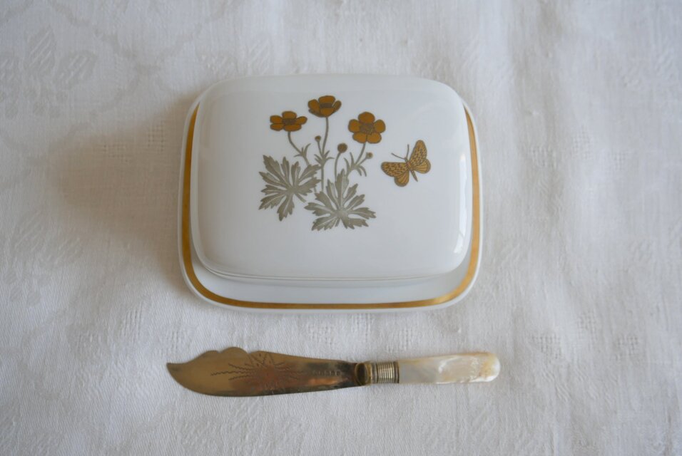 磁器製。バターを入れる部分はやや小さ目ですが、深さのある形です。