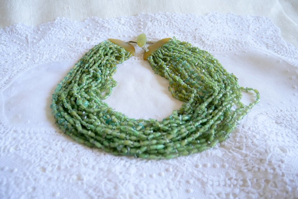 英国【LIBERTY】天然石とビーズを連ねたボリュームあるネックレス