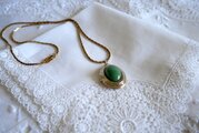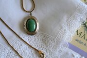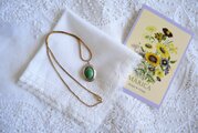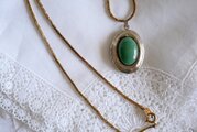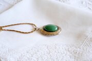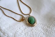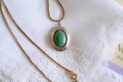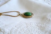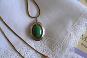 グリーンのオーナメントを飾ったロケットペンダント