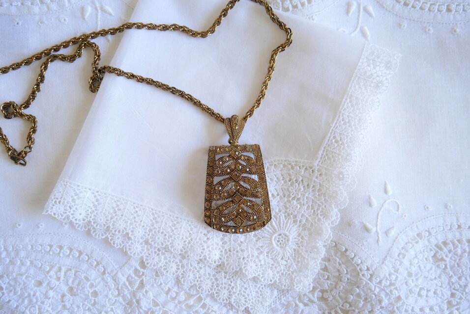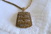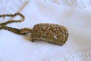 銅鐸(ブロンズベル)型のラインストーン飾りのネックレスペンダント