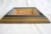 クラシックなフレームは厚みがあり、絵に近いグレーの部分はもともと、水滴を飛ばしたような模様があります。