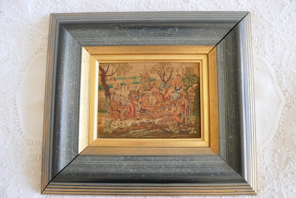 プチポワン風作品を飾ったヴィンテージフレーム