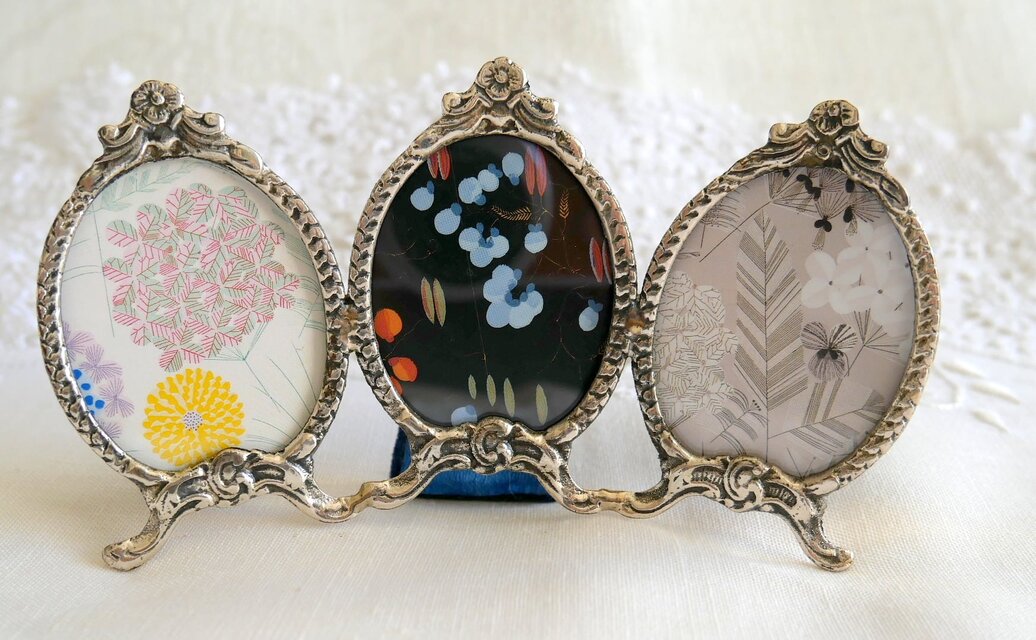 3つの面が連結した、愛らしいサイズのピクチャーフレームです。