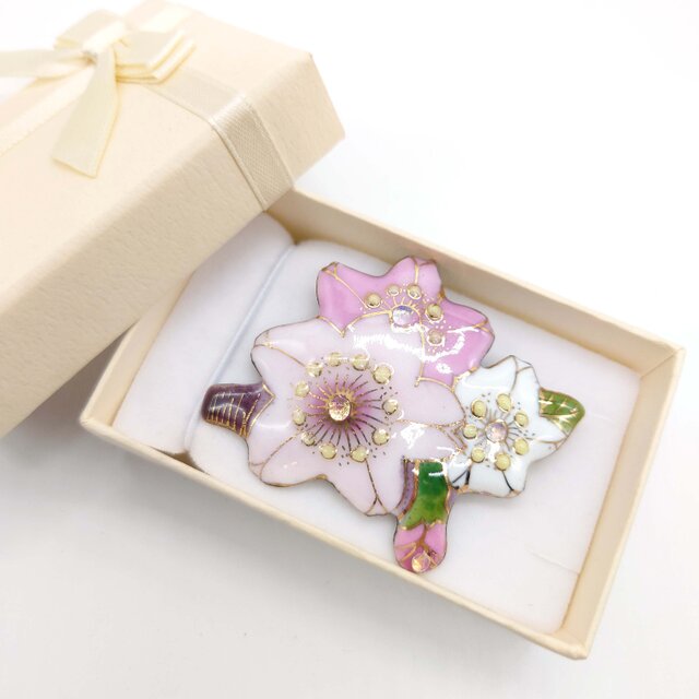 ***七宝焼ならではの色と艶が美しい、桜のブローチはいかがでしょうか***