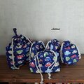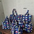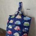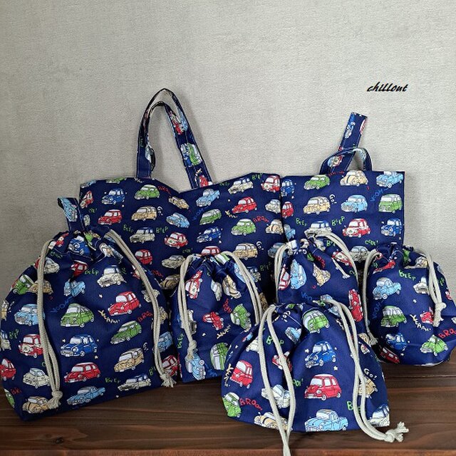 とてもかわいらしいレトロカーの入園バッグセットができあがりました。