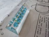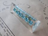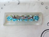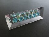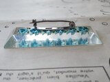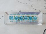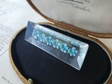 ヴィンテージ 水色の小花6つの長方形(ロングタイプ)のルーサイト製ブローチ