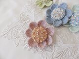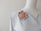 花びらの一枚一枚を丁寧に編み機で二重に編んだ花のブローチです。