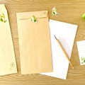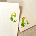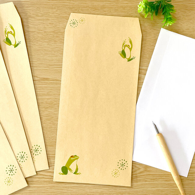 素朴なクラフト紙にカエルのイラストをプリントした長3封筒です。