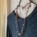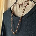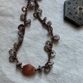 そのカーネリアンをトップに赤茶色のジャワのシードビーズ(現行品)をチェーンにアフリカのパウダービーズの再生玉のスライスビーズを結んでみました。