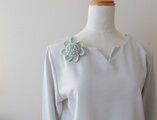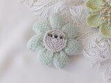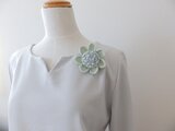 こちらのブローチはミントグリンの麻糸(ラミー)を使用しています。