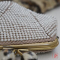 ばあば、大きめ・総ガラスビーズのスクエアがま口(safarifesh・2206)
