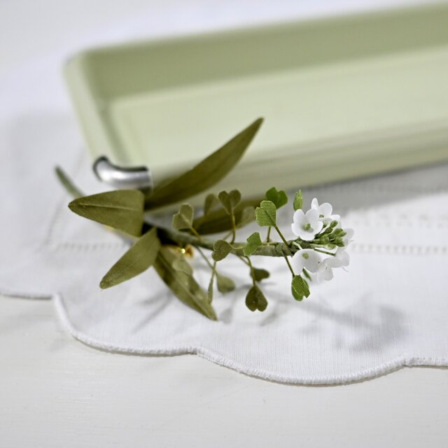 野草好きな人に嬉しい、ナチュラルなぺんぺん草のブローチを布花に仕立てました。