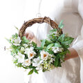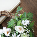ナチュラルなグリーンに、やわらかな白いローズと小花を合わせた
