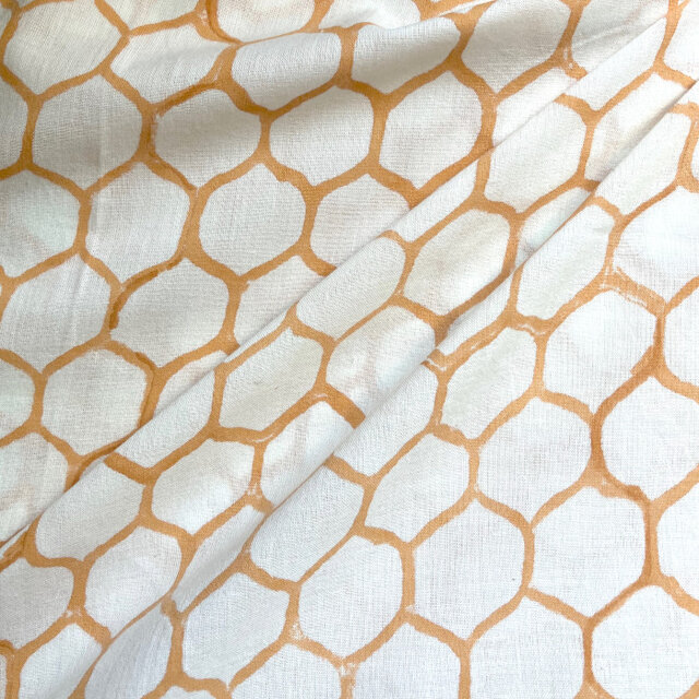 インド ブロックプリント生地 [50cm単位切売] サンガネリ ハニカム イエロー 蜂の巣 IF0481