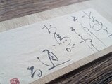 書家として日々膨大な数の紙に練習を致します。商品はこの練習をした紙で作ったオリジナルの袋を使い簡易包装でお送りいたします。エコに貢献するため、その点も弊店のオリジナリティーとご理解頂ければ幸いです。