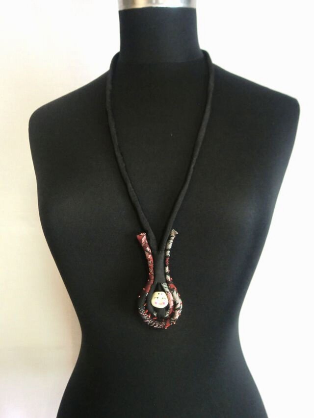 絹の着物地で作った紐をくるくると丸めて