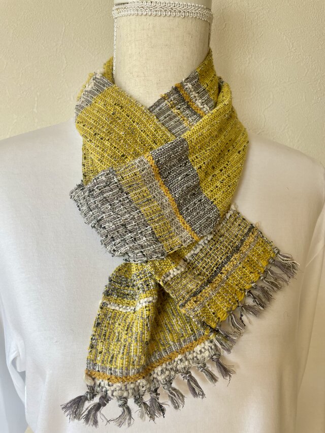 春の菜の花の軽やかな感じを思い浮かべつつ織りました。