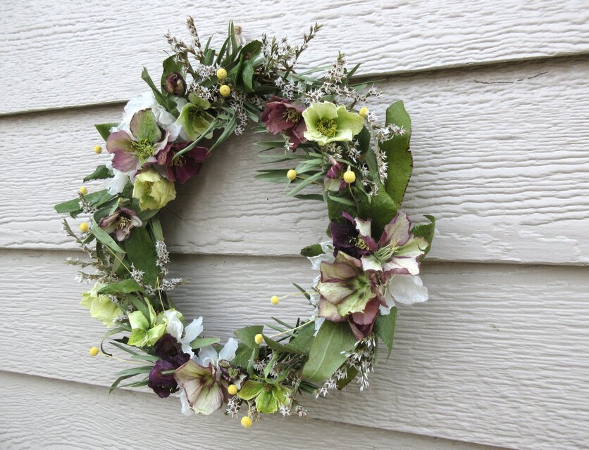 春待ちリース その名の通り春を運んで来る様な可愛い花々で作られており素敵なリースでした。
