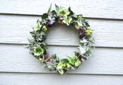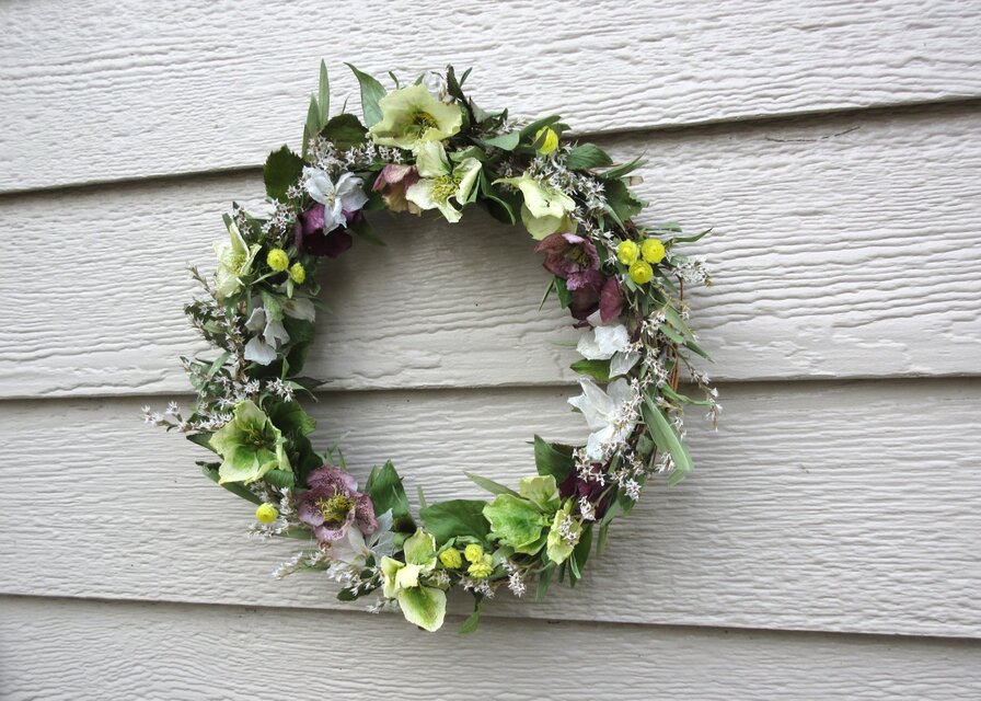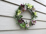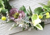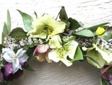 2月、3月、次つぎ咲いたヘレボルス・ニゲル、ヘレボルス・オリエンタリスをふんだんに使った贅沢ななリースです。なんとなく、イングリッシュガーデンをイメージして創りました。