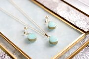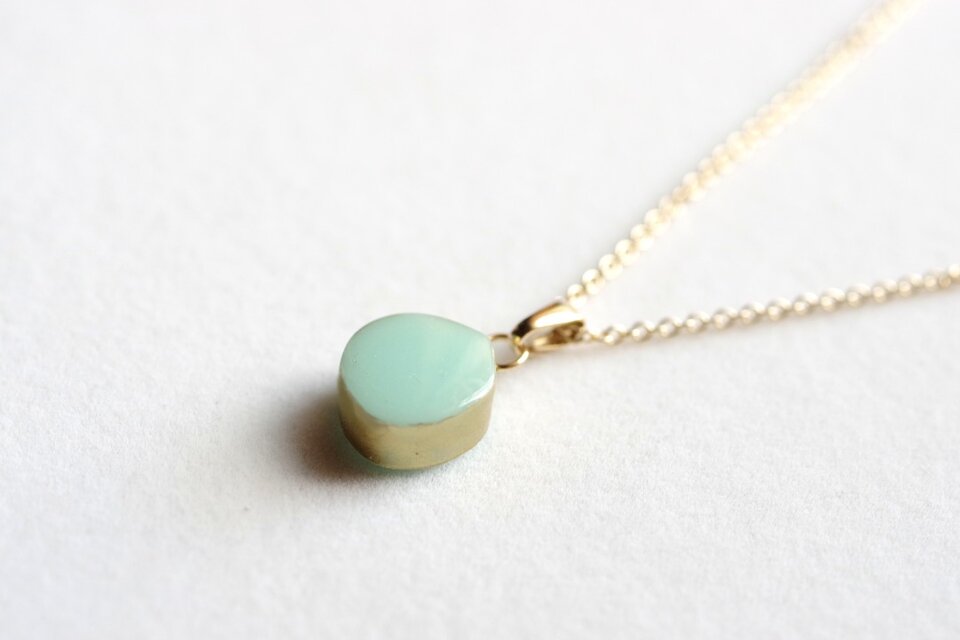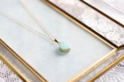 優しいグリーンに側面のゴールドが映えるペンダント。