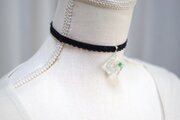【受注製作】レジンアート スクエアモチーフとタティングレースとベルベットリボンのチョーカー〈しづかなる寝顔〉