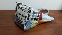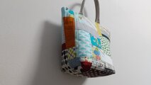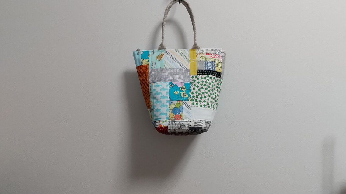 色々な生地をパッチワークして、キルト綿を貼り、バッグを作りました。