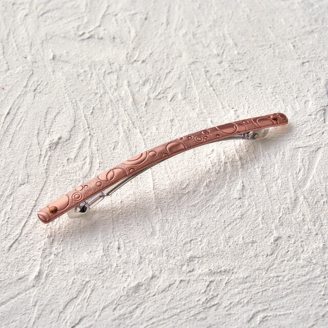 バレッタとしてはほとんど例を見ない銅素材で、ピンクゴールドのような優しい色合い。