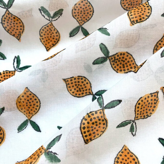 インド ブロックプリント生地 [50cm単位切り売り] レモン ファブリック れもん 檸檬 IF0196