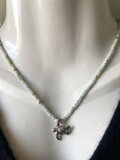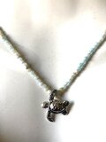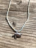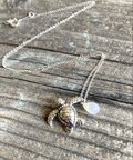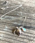 シンプルなシルバーチェーンに、海の欠片をひと粒。虹色の光を放つエチオピアンオパール、穏やかなカルセドニー、南国の海のようなアパタイト、神秘的なムーンストーン。ホヌが海の宝物と一緒に泳いでいるような、あなただけの物語を演出します。