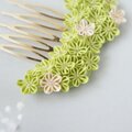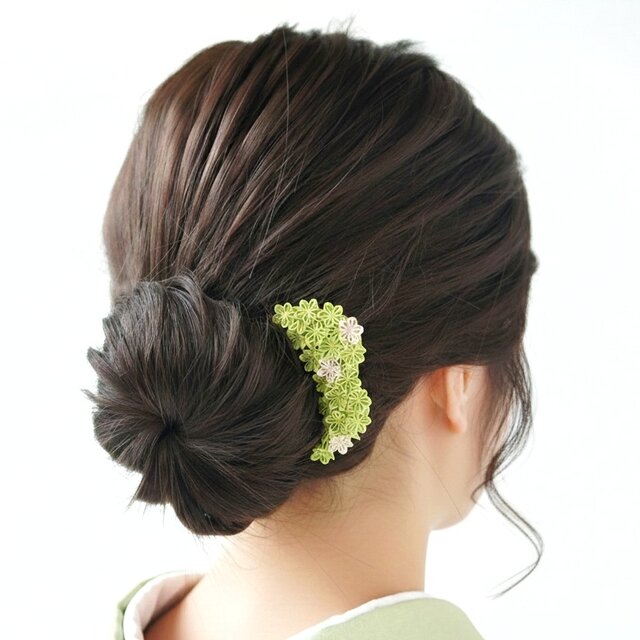 【おだんこやシニヨンに】 ヘアコーム 若草 / つまみ細工 緑 緑色 着物 着物用髪飾り かんざし 簪 和装 和風 春