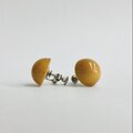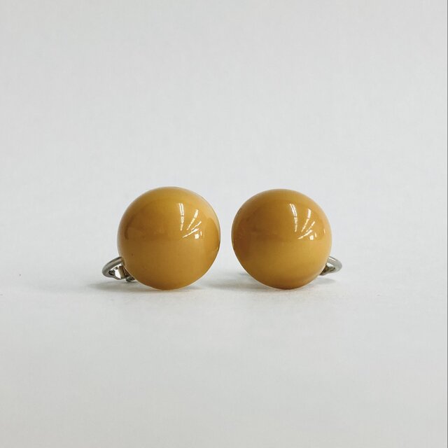 樹脂カボションビーズイヤリング/約16mm/マスタード/made in japan